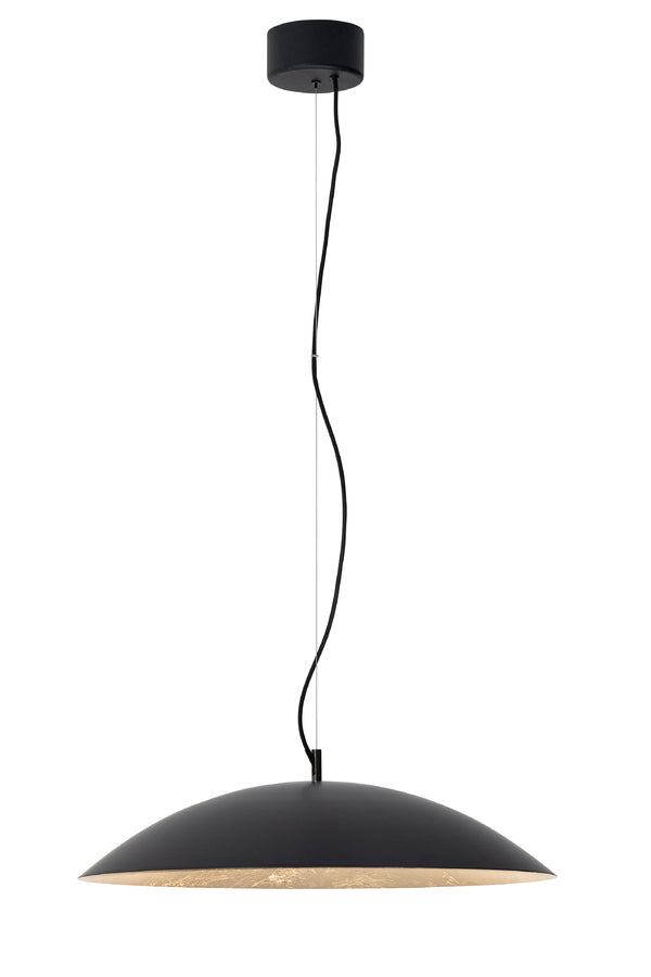 INSPIRATION: The flat dome suspension, adorned with gold leaf, is more than just a source of light. It embodies the harmony between shadow and light, a subtle balance where the light, like a pure thought, softly spreads across the space, creating an atmosphere of serenity. The gold leaf, in its simplicity and nobility, reflects the essence of timeless beauty. It captures the light and transforms it, much like a philosophical thought capturing the present moment and making it eternal.